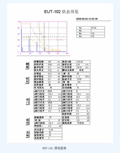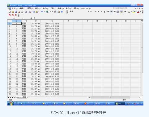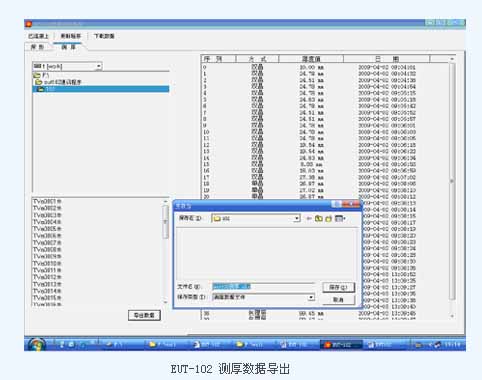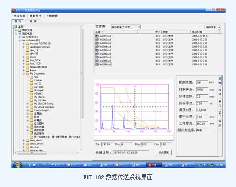 EUT102能通过网络或U盘将探伤文件和测厚文件上传置PC,并利用“EUT102数据传送系统”软件打开并重建探伤回波波型,罗列测厚数据,并可以将数据导出到EXCEL,方便用户生成探伤和测厚报告。