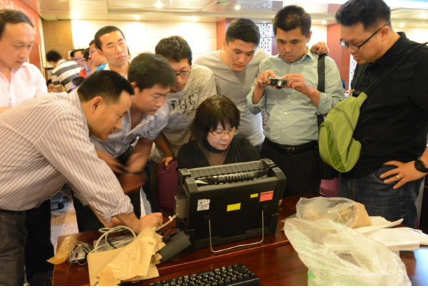 开幕式结束后进行了大会会议报告,中科院声学所张碧星研究员介绍了超声成像检测新理论与方法;日本非破坏学会副理事长、日本探头株式会社社长小仓幸夫介绍了非接触空气耦合检测技术新进展及展望;中国铁道科学研究院黎连修研究员介绍了车轮探伤中的几何声学问题;日本探头株式会社常俊杰研究员介绍了合成孔径超声相控阵检测技术的开发及应用;南昌航空大学无损检测教育部重点实验室陈振华博士介绍了奥氏体不锈钢焊缝超声TOFD检测仪研制及信号处理。会议报告结束后,常俊杰研究员为大家展示了空耦水耦两用超声波自动检测成像系统和孔径合成相控阵检测设备。